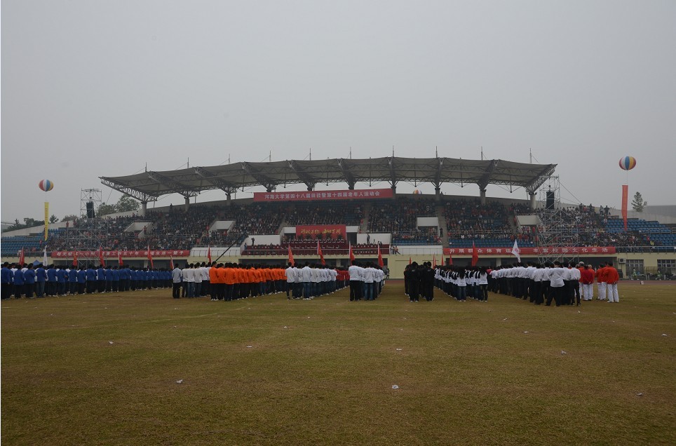 团体操表演同时也拉开了我校第四十八届田径运动会暨第十四届老年人运动会的帷幕。朱拓书记宣布运动会开幕,鞠平副校长致开幕词,王济干副书记主持开幕式。