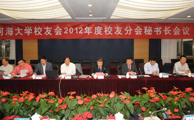 10月26日,河海大学校友会2012年度校友分会秘书长会议在南京召开。来自上海、浙江、吉林、四川、广西、江西、甘肃、黑龙江、河南、湖南、辽宁、宁夏、重庆、广州、大连、新疆喀什地区、淮河水利委员会以及省内各校友分会的约40名秘书长出席了会议。河海大学校友会会长、校长王乘出席会议并讲话。大会由副校长唐洪武主持。