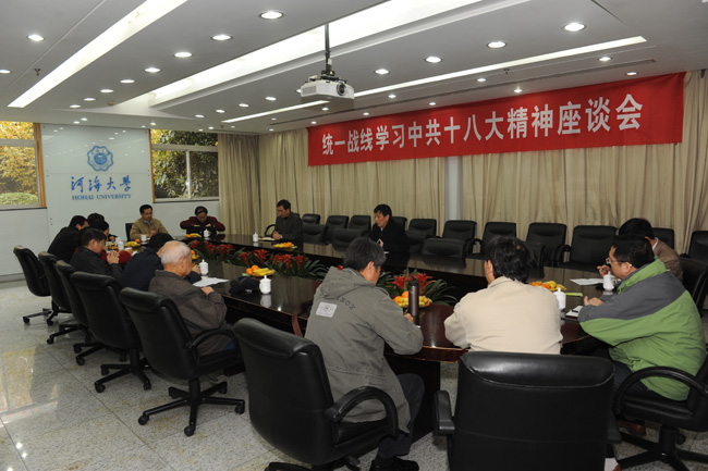 1116,校党委召开统一战线学习中共十八大精神座谈会。校党委书记朱拓出席会议,学校各民主党派组织主委和部分代表、无党派人士联谊会、侨联、台谊会负责人参加座谈。