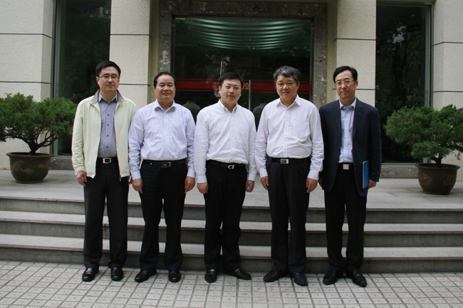 王乘校长(右二)和李乃富副校长(右四)与曹路宝区长(右三)合影