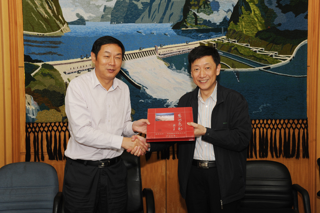 朱拓书记(左二)和张杰副书记(左一)互赠纪念品