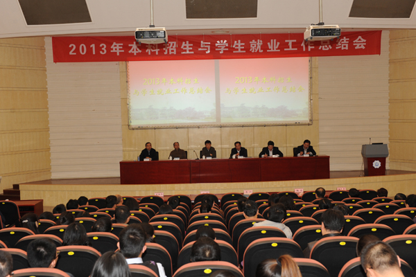 王济干副书记总结了学校2013年招生就业工作取得的成绩,分析了我校招生就业工作面临的严峻形势,并提出了下一步的工作思路和举措。