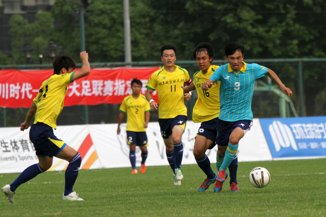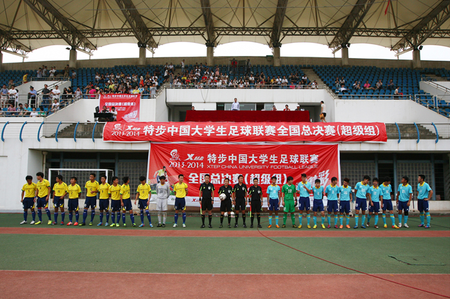 6月22日,我校男子足球队在2013-2014特步中国大学生足球联赛半决赛主场对阵北京航空航天大学时,以1:0获胜,最终以两回合总比分4:1淘汰北京航空航天大学,闯入全国总决赛冠亚军决赛。决赛将于6月28日下午3:00打响,届时我校将与北京理工大学一决胜负,CCTV5将对赛况进行录播,PPTV进行现场直播。 (戴祖民)