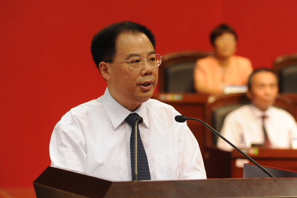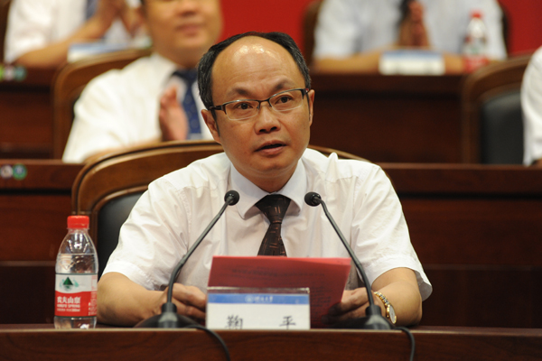 典礼嘉宾、河海大学杰出校友、黄河水利委员会信息中心主任娄渊清致辞