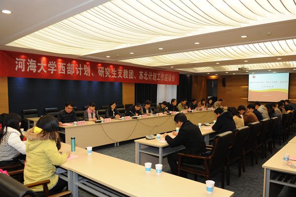 1月5日,河海大学召开志愿服务西部计划、苏北计划、研究生支教团工作座谈会。校党委书记朱拓、党委副书记郭继超、团省委志愿者工作部调研员施静芝出席会议。