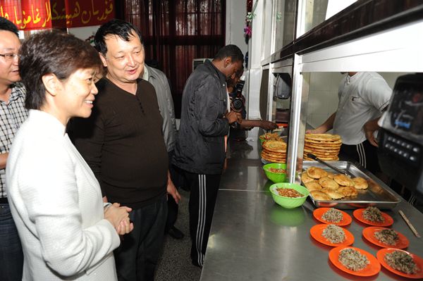座谈会后,许津荣副省长、王雪非副主席一行参观了学校清真食堂,并与食堂工作人员及就餐学生亲切交流。