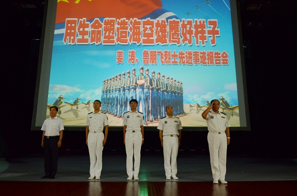 9月23日,用生命塑造海空雄鹰好样子——姜涛、鲁朋飞烈士先进事迹报告会在我校举行。河海大学党委副书记郭继超、海军驻河海大学选培办乔光玉主任、海军政治部人才办陈德洪干事出席会议。报告会由郭继超副书记主持。报告会前校党委书记朱拓会见了报告团所有成员。