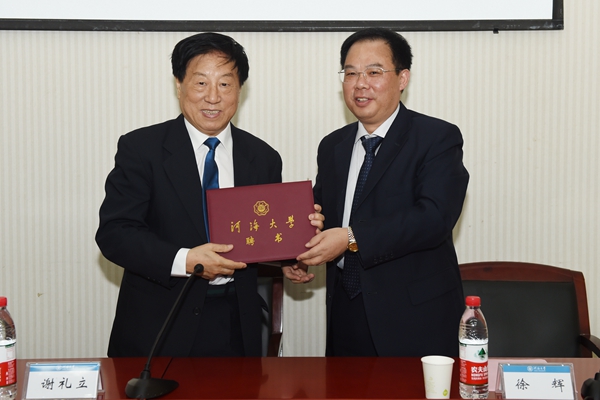 10月12日,河海大学举行中国工程院谢礼立院士双聘院士受聘仪式。校长徐辉、副校长唐洪武及有关师生代表参加了聘任仪式。