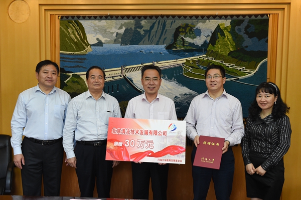 10月19日,北京清流技术发展有限公司向我校教育发展基金会捐赠30万元,用于河海大学学生创新、创业竞赛活动。