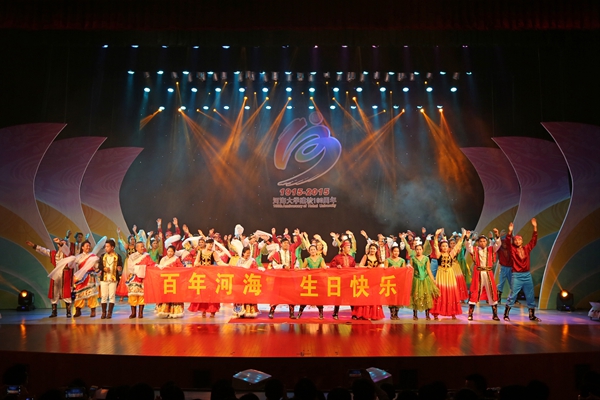 晚会以气势恢弘的交响音诗《百年河海》开场,激昂跌宕的交响乐声中,一幅幅震撼人心的历史画卷全面展现了从1915到2015百年河海的百年辉煌,“壮哉河海,大哉河海”感人肺腑、动人心弦,抒发了河海人对母校的无比自豪和深深敬意之情,感染了在场所有观众;水之歌联唱《洪湖水,浪打浪》、《父亲的草原母亲的河》、《长江之歌》和梦之声演唱《追寻》、《梦想星光》、《我们的中国梦》用欢快的节奏、热情的歌唱为河海百岁生日送上了最美好的祝福,唱出了新一代河海人献身水利、建功立业的豪情壮志和爱国爱水爱校的家国情怀;舞蹈《江河清》、《奋进》、《大河,我们不能失去的梦》、《快乐甲板》、《风情河海》,展现了在校大学生、在职和离退休教职工、国防生、少数民族学生积极向上的精神风貌;健美操《律动青春》、情景诗画《向河海报到》、民乐合奏《花好月圆》、弦乐合奏《圣保罗组曲》等节目美轮美奂、青春活泼、高雅精致,掀起了晚会一个又一个高潮。晚会在全体演员及观众齐声高唱《河海大学校歌》中进入华彩尾声,全场歌声飞扬、欢声雷动。