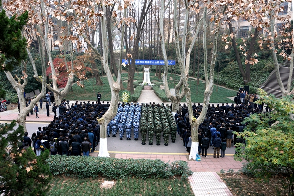 12月13日,是第二个“国家公祭日”。我校在南京大屠杀死难者清凉山丛葬地“侵华日军南京大屠杀清凉山遇难同胞纪念碑”前隆重举行悼念活动,沉痛悼念和缅怀逝去的同胞,表达不忘国耻、圆梦中华的决心。悼念仪式由校党委书记朱拓主持,校领导、二级单位党委书记、副书记,机关干部,教师代表,国防生、学生骨干和抗战老兵参加了悼念仪式。