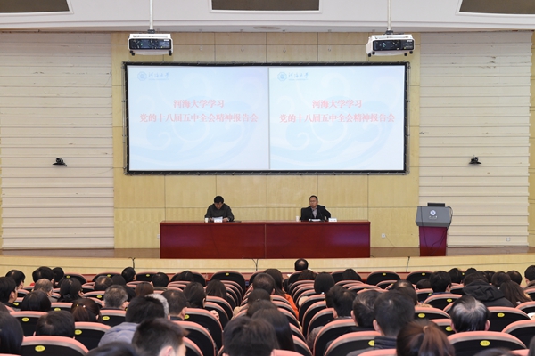 12月18日,我校举行学习十八届五中全会精神报告会,省委宣讲团成员,省社科联党组书记、常务副主席刘德海作宣讲报告。校党委书记朱拓主持报告会并讲话。