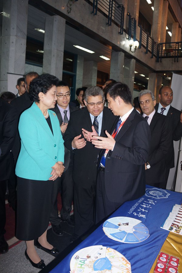 本次论坛由中国教育部主办,主题是“‘一带一路’与中埃人文交流”。期间,国务院副总理刘延东和埃及高教科研部部长希哈共同为中国高等教育展剪彩。在河海大学展台前,刘延东副总理向希哈部长介绍河海大学是一所有着百年办学历史,以水利为特色的高校。朱拓书记与希哈部长等官员以及来到学校展台的埃及学生做了交流,介绍了学校的办学特色与优势,并希望加强校际的合作,共同为“一带一路”建设和中埃人文交流作出积极贡献。
