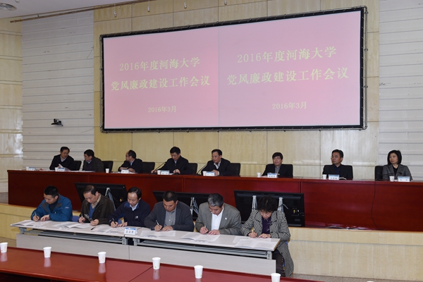 3月30日,河海大学召开2016年党风廉政建设工作会议。全体校领导、校长助理、校党委委员、校纪委委员、民主党派负责人、中层干部、重点部门科级干部、党风廉政监督员和兼职纪检员参加了会议。校长徐辉主持会议。