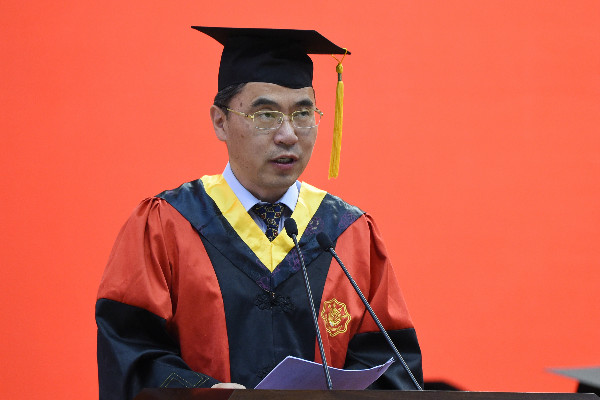 典礼上,徐辉校长发表了《不忘初心莫负韶华》的演讲,向顺利完成学业的各位同学表示热烈的祝贺,向养育、培养其成才的父母、老师致以最诚挚的感谢。徐校长以“创新”为主题,寄语广大毕业研究生要积极响应时代的召唤,保持初学者的心态,时刻对新知识充满渴望,不断学习实践,保持与社会同步、与发展同频,脚踏实地,担当有为,务实创新,成就事业。徐校长希望在万众创新、创新驱动发展的时代,广大研究生能够做到:一是保持初心,坚定信心,要有勇气打破思维藩篱,创造原始创新成果,在研究方向上善始善终,砥砺前行,在执着和坚守中成长成才;二是临事而惧,好谋而成,要培养“问题导向”的思维方式,尊重规律,追求真理,善于在前人研究的基础上发现问题,未雨绸缪,谋定而后动;三是穷理致知,反躬践实,要把人生追求和研究成果融入国家和民族发展的宏大实践中,成就个人的最高事业。徐校长殷切期望河海学子不忘母校嘱托,以兼济天下的胸怀,在这个伟大的创新时代下用美丽青春书写出自己的精彩人生。