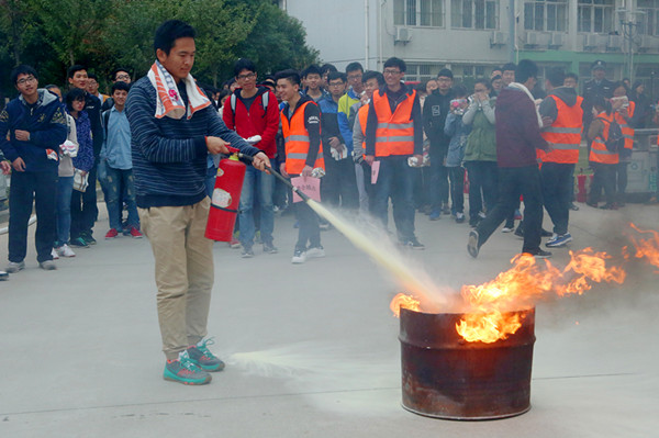 系列活动以“宣贯《消防法》,积极创建省平安校园示范高校”为主题,签订《消防安全责任书》,大学生安全知识竞赛、消防安全知识培训、设置消防宣传专栏、消防疏散演练、灭火器灭火演练等活动相继开展。11月9日,保卫处、学生处以及后勤部门的教职员工、辅导员、学生、消防志愿者等200多人参加了消防培训和实地演练。通过安全消防知识学习与具体实战演练相结合的生动形式,大家充分了解了火灾发生时的应急处理措施和预案,初步掌握了扑救初期火灾、疏散逃生等知识和技巧,极大地提高了安全意识和自救技能。(张木兰)
