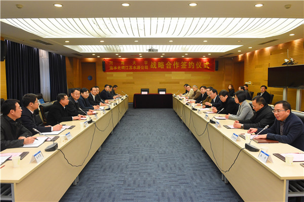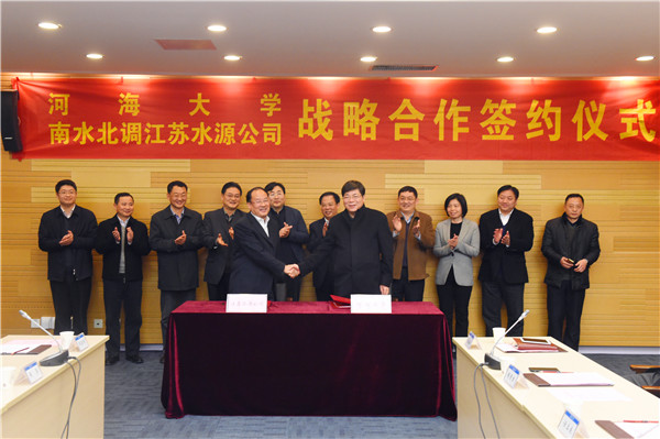 12月1日,河海大学与南水北调东线江苏水源有限责任公司战略合作框架协议签字仪式在河海大学举行。南水北调东线江苏水源公司董事长、党委书记邹徐文,总经理、党委副书记荣迎春,副总经理刘军,副总经理冯旭松,纪委书记濮学年,河海大学校长徐辉,副校长朱跃龙,副校长唐洪武,党委副书记、纪委书记孟新出席签字仪式。朱跃龙副校长与荣迎春总经理代表双方在合作协议上签字。