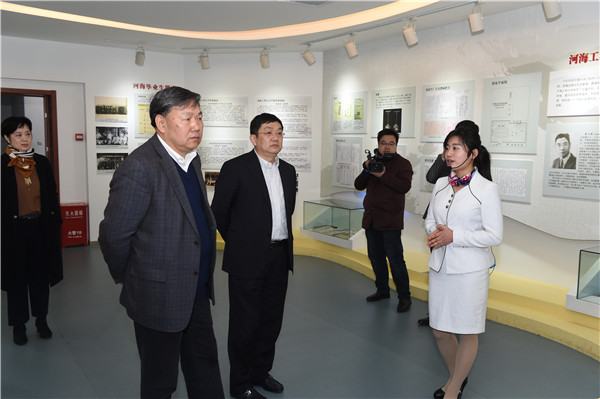 座谈会前,陆桂华副部长一行参观了校史馆,实地考察了水文水资源与水利工程国家重点实验室水环境综合治理试验厅,深入水文水资源学院与教师进行了亲切交谈。