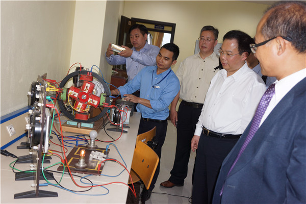 徐辉校长(右二)一行参观老挝国家电力公司实验室