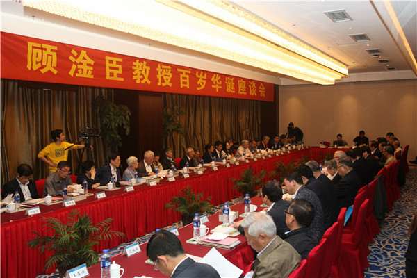 中国工程院院士陈厚群、卢耀如、茆智、吴中如,中国水利工程协会会长孙继昌,中国水利教育协会会长彭建明,中国大坝工程学会副理事长贾金生,中国土工合成材料工程协会理事长陆忠民,顾淦臣教授原工作单位领导,工程设计成果所在主管部门领导参加座谈并讲话。他们纷纷回顾、肯定了顾淦臣教授为我国水利建设和教育事业做出的贡献。他们表示,在长期的科学研究和工程实践中,顾老开拓创新、潜心研究,提出了许多原创性理论,并在具体工程实践中进行了广泛应用,取得了显著的社会效益和经济效益,得到了广泛好评。