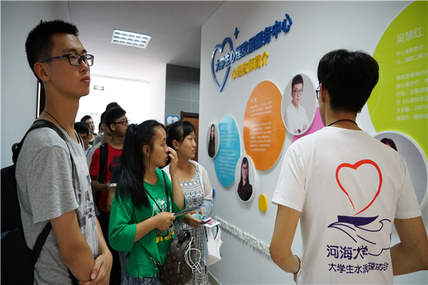 学校安排全体新生参观了大学生心理发展服务中心,向新生发放“新生入学适应”宣传折页,使全体新生了解了学校心理发展服务方式并对可能出现的适应问题及其调适方法有了初步了解。还举行了“安全·我的健康我做主” 安全教育和健康教育主题报告会,江苏省公安厅内保总队张青警官作了《大学生常见安全问题预防与应对》报告,用生动丰富的案例,警示广大新生提高安全意识,学会安全生活。中国红十字会救护资深老师顾翠平则进行了现场心肺复苏教学,帮助学生增加健康和急救知识。