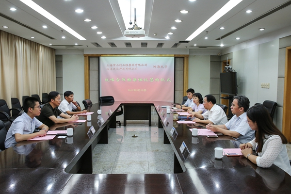 9月19日,上海市水利工程集团有限公司与我校签署战略合作框架协议,并向我校教育发展基金会捐赠200万元,主要用于学生大病救助、创新创业、学生活动。河海大学校长徐辉、党委副书记郭继超,沿海建设开发有限公司董事长、上海市水利工程集团有限公司名誉董事长张光远,上海市水利工程集团有限公司总裁何建强出席签约及捐赠仪式。仪式由校党委副书记郭继超主持。