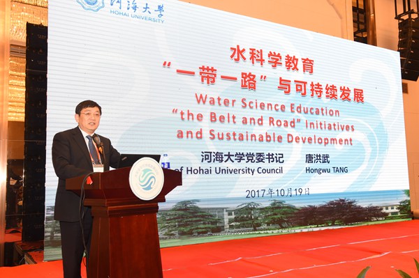 日前,河海大学、南京水利科学研究院(以下简称“南科院”)共同承办了第二届水安全与可持续发展(WSS)国际工程科技发展战略高端论坛,吸引了来自国内外的400余位院士和专家学者,共同探讨变化环境下水安全战略需求以及国际水科学前沿问题。同日,由双方共同出资、联合设立的“一带一路”水与可持续发展基金正式启动。围绕“水与可持续发展”主题,河海大学党委书记唐洪武代表双方作了题为《水科学教育、一带一路与可持续发展》的主旨报告。