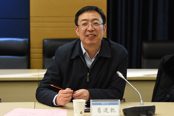 葛道凯厅长听取了河海大学总体办学情况和服务江苏工作的介绍,充分肯定了学校近年来的办学成就及为江苏经济社会发展作出的贡献。他强调,要在党的十九大精神指引下,贯彻落实高校思想政治工作会议精神和“加强和改进高校思想政治工作座谈会”精神,切实做好新形势下高校意识形态工作。他希望学校能够发挥水利、环境等一流学科的优势,打造江苏省涉水高校、科研院所的战略联盟,形成多方联动的拳头合力;加强与行业企事业单位的对接交流与思想碰撞,进一步提升学校服务“强富美高”新江苏建设的能力。