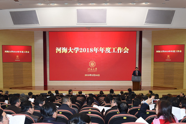 新春伊始,万象更新。2月24-25日,河海大学以“贯彻落实学校第十三次党代会目标任务,全面推进‘双一流'建设”为主题,召开2018年年度工作会议。校领导,院士,校长助理,党委委员、纪委委员,全体中层干部及有关单位负责人,民主党派负责人,教师代表参加会议。校党委书记唐洪武、校长徐辉先后主持会议。