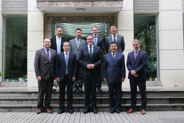 徐卫亚副校长向来宾介绍了学校基本情况以及我校双一流建设的有关情况,希望双方在学生和学者交换、联合培养博士、合作研究等方面进一步深化合作。托斯腾·舒乐曼教授介绍了莱布尼茨汉诺威大学的基本情况,认为两校的现有合作成果丰富,并同意徐卫亚副校长关于进一步深化双方合作的提议。