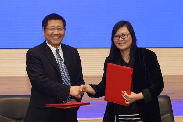 徐卫亚副校长(左)与宋晓剑总监(右)签署校企合作协议