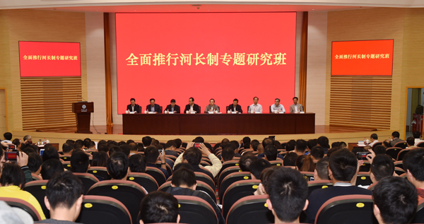 开班式后,周学文副部长为全体学员、河海师生代表、南京水利科学研究院和江苏省水利厅相关代表作了全面推行河(湖)长制专题讲座,并与各位河湖长进行了交流。(文/顾建国 图/朱昊)