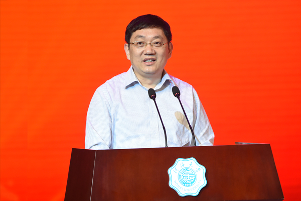 唐洪武书记对出席活动的各位领导来宾表示热烈的欢迎。他指出,科学的理论跨越历史闪耀真理的光芒,伟大的思想超越时代激发信仰的力量,今年是马克思诞辰200周年,也是《共产党宣言》发表170周年,习近平总书记在纪念马克思诞辰200周年大会上的重要讲话深刻阐明了马克思主义的强大真理力量,明确宣示了中国共产党人对马克思主义的坚定信念,为我们在新时代坚持和发展马克思主义指明了方向、提供了遵循。走过百年历程的河海大学,始终与祖国共命运,与时代同步伐,坚定不移高扬马克思主义伟大旗帜。建校之初,以张闻天为代表的河海学生学习和传播马克思主义,成为南京学界反帝爱国斗争的旗帜和先锋,河海被誉为“红帽子”大学。学校始终高度重视马克思主义理论的学习和研究,将马克思主义贯穿于治水兴邦、兴学育才的生动实践之中,在校园中形成了践行和传播马克思主义的浓郁氛围。近年来,河海大学全面贯彻落实党的教育方针,坚持社会主义办学方向,紧紧抓住学习贯彻党的十九大和全国高校思政会精神的大好机遇,扎实推进理论武装,牢固树立“四个意识”,坚定“四个自信”,用马克思主义和党的理论创新成果教育师生,用身边鲜活的典型人物、先进事迹引导师生,用富有特色的实践活动凝聚师生。唐洪武书记表示,学校将以此活动为契机,聚焦青年学生,进一步抓好马克思主义教育,抓好习近平新时代中国特色社会主义思想教育,引导青年学生学会运用马克思主义立场观点方法认识问题、分析问题,让马克思主义这一中国大学最鲜明的底色充分彰显,同时勉励广大河海学子牢记习近平总书记对青年提出的“爱国、励志、求真、力行”的要求,以习近平新时代中国特色社会主义思想为指引,在奋斗中释放青春激情、追逐青春理想,以青春之我、奋斗之我,为民族复兴铺路架桥,为祖国建设添砖加瓦。