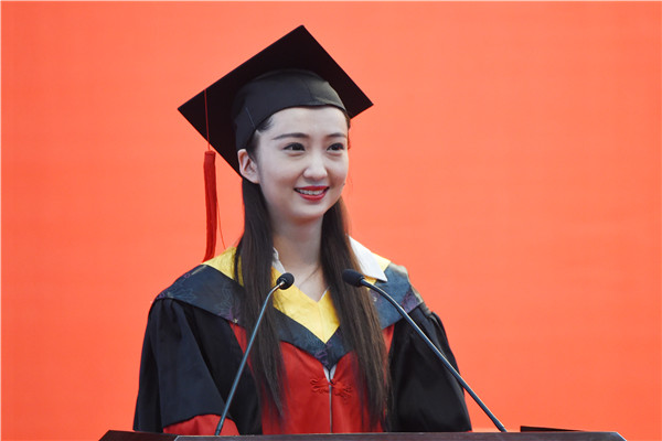 毕业研究生代表农业水土工程专业刘笑吟博士结合自身的求学经历表达了全体毕业研究生对母校的依依惜别之情和对老师的深深感激,表示将怀揣身为河海人的骄傲,如水赴壑,砥砺前行,努力做担当民族复兴大任的时代新人。