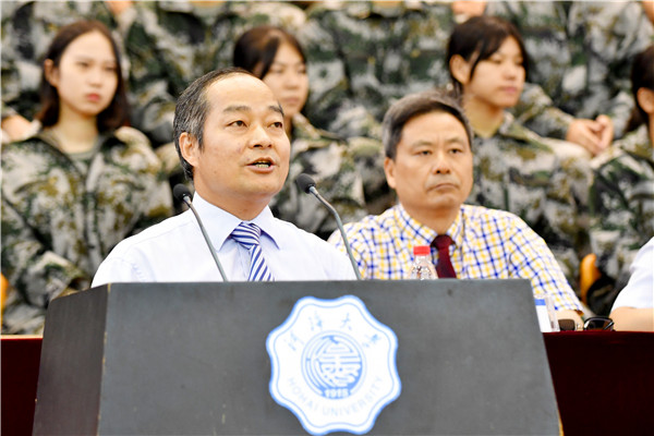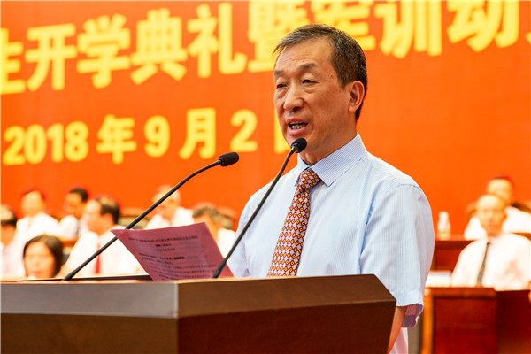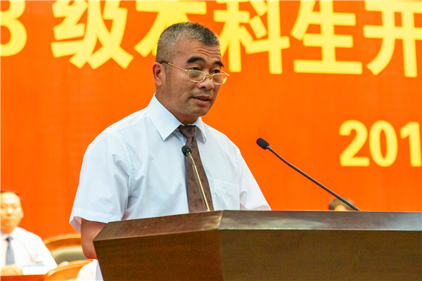 教师代表法学院陈广华教授和机电工程学院倪福生教授对2018级本科新同学表示最诚挚的祝贺和最热烈的欢迎,并结合自身经历和执教经验,建议同学们在大学阶段的学习中要学习知识、增长见识、拓宽视野、胸怀大志、学会感恩。新生代表献辞,表示将立鸿鹄志、做奋斗者,求真学问、练真本领,用青春和理想书写下属于自己的青春故事。