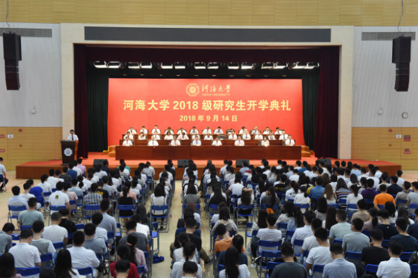 9月14日,我校隆重举行2018级研究生开学典礼。校党委书记唐洪武,校长徐辉,典礼嘉宾、河海大学杰出校友、水利部党校专职副校长、水利部人才资源开发中心主任陈楚,校党委副书记郭继超,校总会计师张兵,校党委副书记、纪委书记孟新,副校长许峰出席典礼。董增川副校长主持开学典礼。
