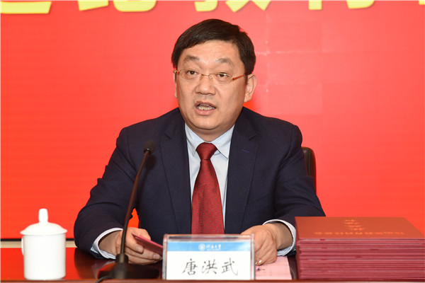 唐洪武书记在讲话中指出,近年来,学校深入学习贯彻习近平新时代中国特色社会主义思想和党的十九大精神,全面贯彻落实全国高校思想政治工作会议精神和全国教育大会精神,积极推进一流大学、一流学科建设,在上级组织、社会各界、海内外校友的关心支持下,全体师生员工齐心协力、砥砺前行,学校各项事业取得了可喜成绩,社会声誉和影响力得到进一步提升。他表示,进入新时代,学校坚持社会主义办学方向,贯彻党的教育方针,面向“四个服务”,增强扎根中国大地办教育的自觉自信,聚焦学校第十三次党代会描绘的宏伟蓝图,按照“坚定不移加强党的领导、坚定不移提升治理能力、坚定不移推进内涵提升、坚定不移优化特色发展、坚定不移深化综合改革、坚定不移弘扬河海精神”的发展思路,扎实推进九大建设任务,加快建设世界一流特色研究型大学步伐,为决胜全面建成小康社会、夺取新时代中国特色社会主义伟大胜利、实现中华民族伟大复兴作出新的更大贡献。