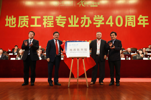 10月27日,新时代地质工程的机遇与挑战学术研讨会暨河海大学地质工程专业办学40周年学科建设与人才培养研讨会在江宁校区举行。校党委书记唐洪武、副校长许峰,学校相关部门负责人,地球科学与工程学院全体领导、老领导代表,地质工程专业退休教师代表、各届校友代表、全体师生出席会议。会上,校党委书记唐洪武、副校长许峰、校友代表南昌大学校长周创兵、皖江工学院董事长朱洪高共同为地质陈列馆揭牌。
