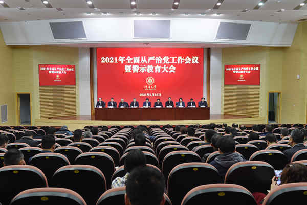 3月15日,河海大学召开2021年全面从严治党工作会议暨警示教育大会,深入学习贯彻十九届中央纪委五次全会、2021年教育系统全面从严治党工作视频会议和十三届江苏省纪委六次全会精神,回顾总结2020年学校全面从严治党工作,分析研判形势,剖析典型案例,部署安排2021年重点任务。