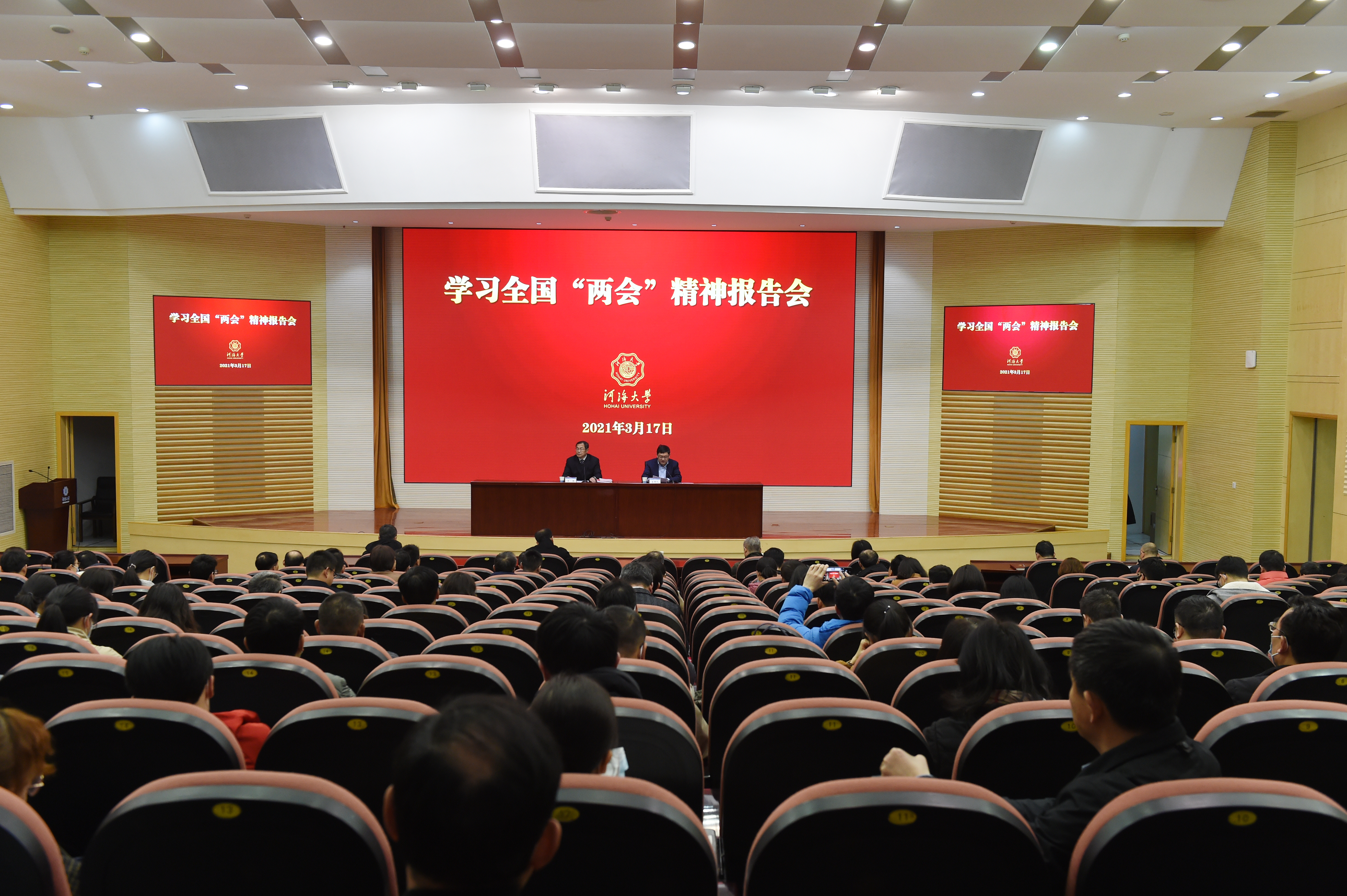 3月17日,河海大学举行学习传达全国“两会”精神报告会。全国人大代表、中国工程院院士、河海大学王超教授传达2021年全国“两会”精神,校党委书记唐洪武主持会议并讲话。校领导、校长助理、党委委员、纪委委员、中层干部、科级干部、师生代表、离退休老同志代表参加会议。常州校区通过视频参加会议。