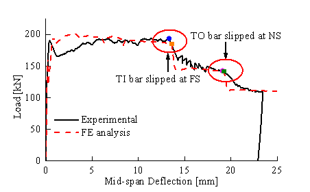 俞小彤博士与Karin Lundgren教授团队依托瑞典一座服役80年的RC桥梁(Gullspång Bridge),现场选取桥梁的边梁进行三点弯曲等试验,分析荷载-挠度曲线、钢筋锈蚀与屈服形态。研究发现自然腐蚀RC梁极限挠度由端部粘结性能决定,钢筋屈服具有不对称性(图1),并提出了不对称因子(a=Δl/0.5l)量化不对称程度。