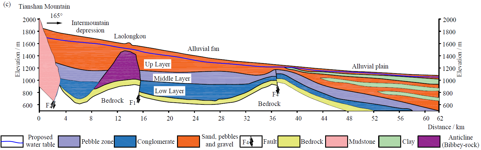 图1 台兰河山前倾斜平原南北向水文地质剖面图