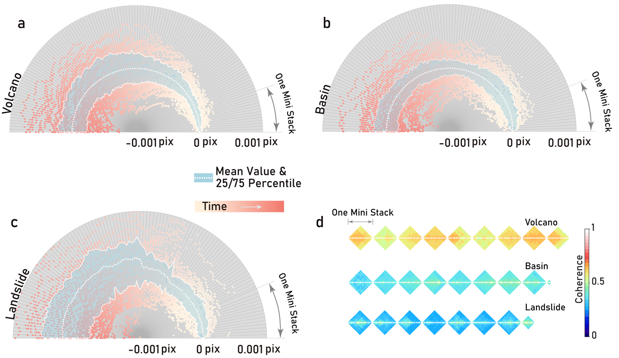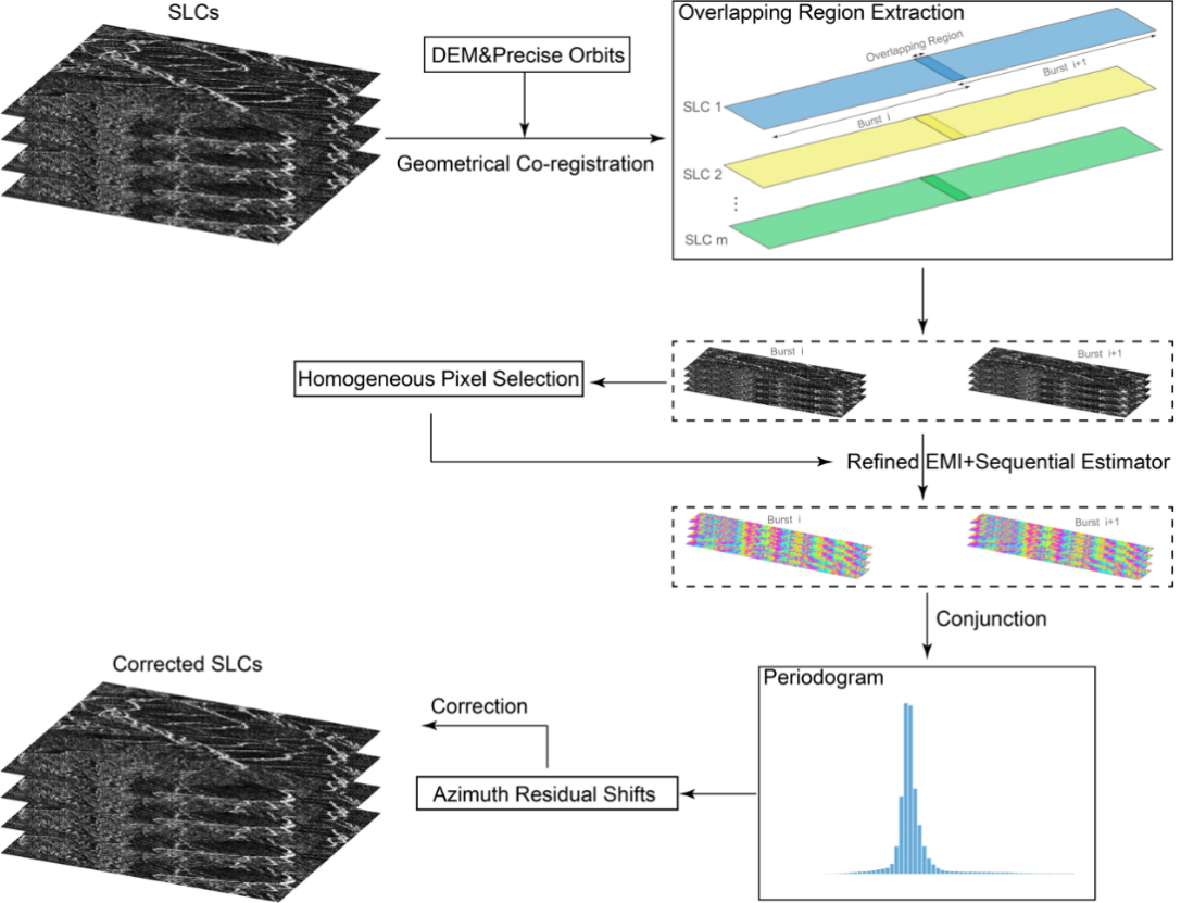 提出的长时序数据配准流程首次提出在雷达影像波束的重叠区域上使用双样本估计器,改善样本协方差矩阵的统计特性,从而提高重叠区域相位优化器的性能,将数据作为一个个迷你堆栈,使用数据压缩提高计算效率,该处理流程无需对整个数据堆栈进行重新处理,避免了数据的重复读取与重复处理,显著减少了数据存储负担并提升了计算效率。