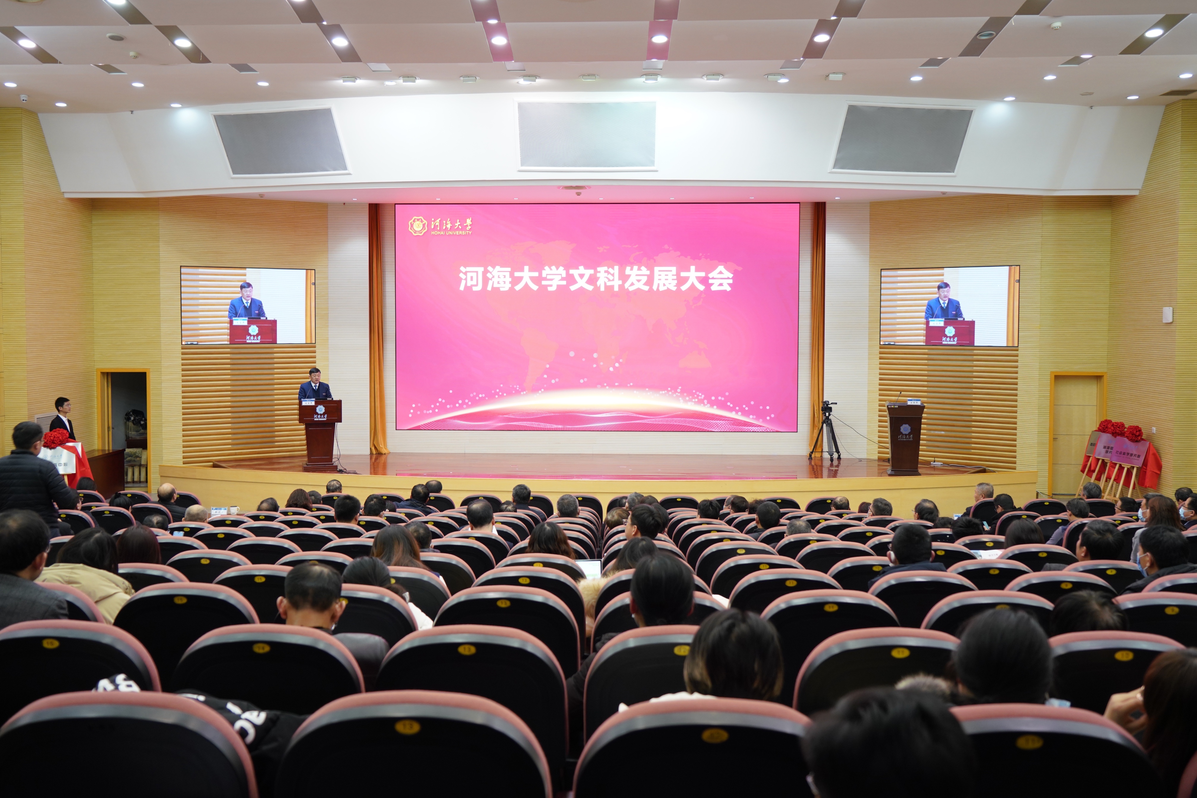 1月8日,河海大学举行文科发展大会。教育部社会科学司副司长谭方正,江苏省委教育工委副书记徐子敏,江苏省社科联党组书记、常务副主席张新科,江苏省哲学社会科学规划办公室主任许益军出席大会并讲话。校党委书记唐洪武致辞并作讲话,校长徐辉作报告,大会由党委副书记郭继超、副校长张兵分别主持。全体校领导,校长助理,职能部门和各院系党政负责人、文科客座教授,文科院系教授代表,教师和学生代表等200余人参加了本次会议。