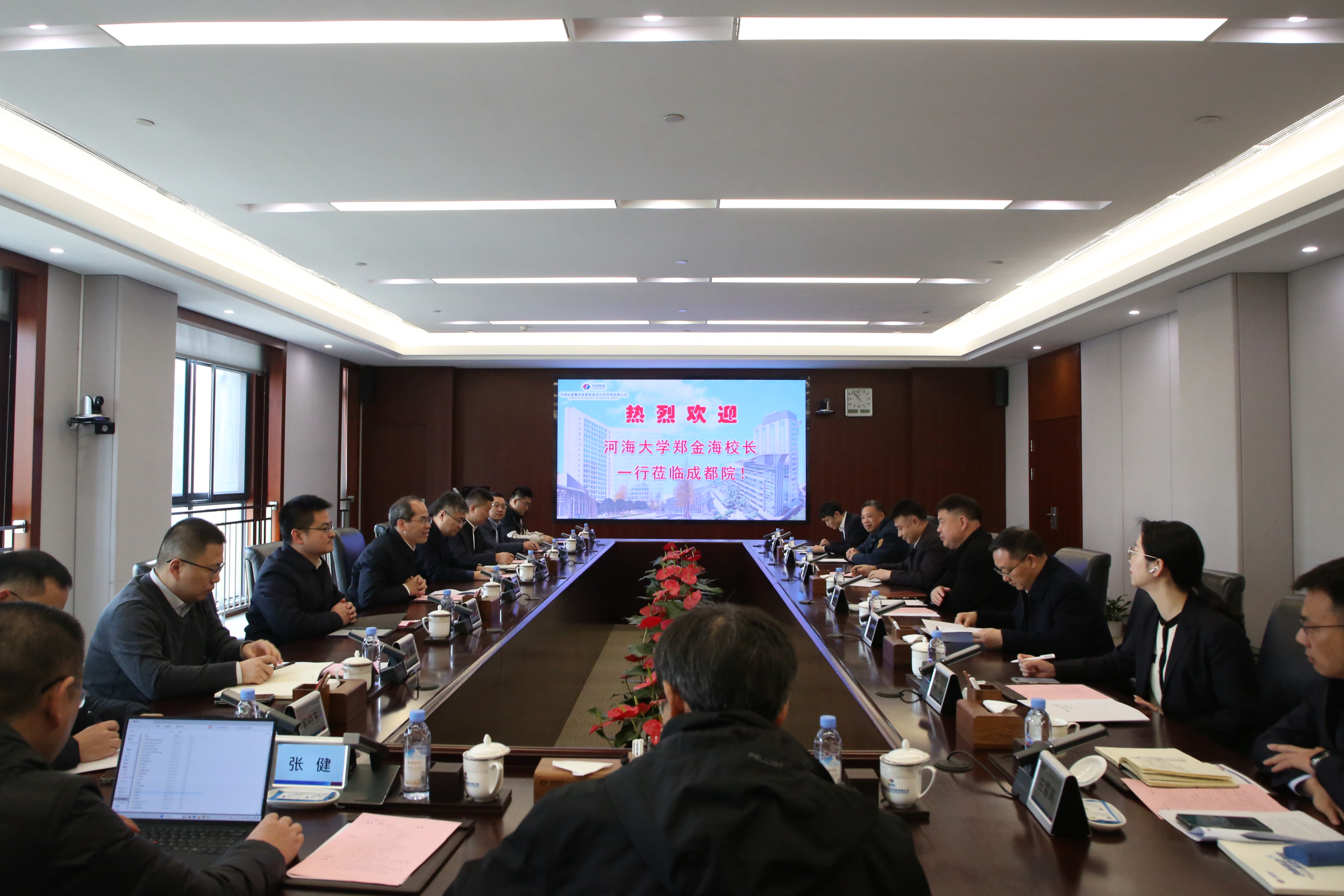 在中国电建成都院,院党委书记、董事长张世殊对郑金海一行表示欢迎,回顾了校企双方数十年的深厚合作渊源,感谢河海大学长期输送大量优秀人才、助力多项重大工程技术攻关,期待双方在人才培养、科研攻关、成果转化等领域深化合作,推动更多合作项目落地。郑金海对成都院长期支持学校发展表示感谢。他表示,双方应紧扣“十五五” 发展契机,以国家重大战略和企业实际工程需求为导向,推动校企合作提档升级,要将合作关口前移,聚焦雅下工程、抽水蓄能等领域技术难题,通过博士生联合培养、共建高等研究院等方式,打造教育科技人才一体推进的长效合作机制,联合培养更多卓越工程人才,实现校企共赢、共同发展。